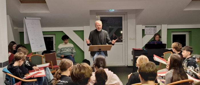 Ende November fuhr der neu zusammengesetzte Chor der 7. Klassen mit knapp 70 Schülerinnen und Schülern aus allen vier Profilklassen nach Gnewikow, um sich kennenzulernen und für die Weihnachtlichen Konzerte im Dezember zu proben. Trotz trüben Wetters wurden die Tage nicht nur zum Proben, sondern auch für gemeinsames Spielen draußen und drinnen genutzt.