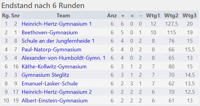 Gratulation an unsere sechs Spielerinnen und Spieler, die unsere Schule äußerst kompetent und erfolgreich vertreten haben. Glückwunsch an Jonas, Hao, Sascha, Kiano, Arthur und Linnea zum Titel des Berliner Vizemeisters!