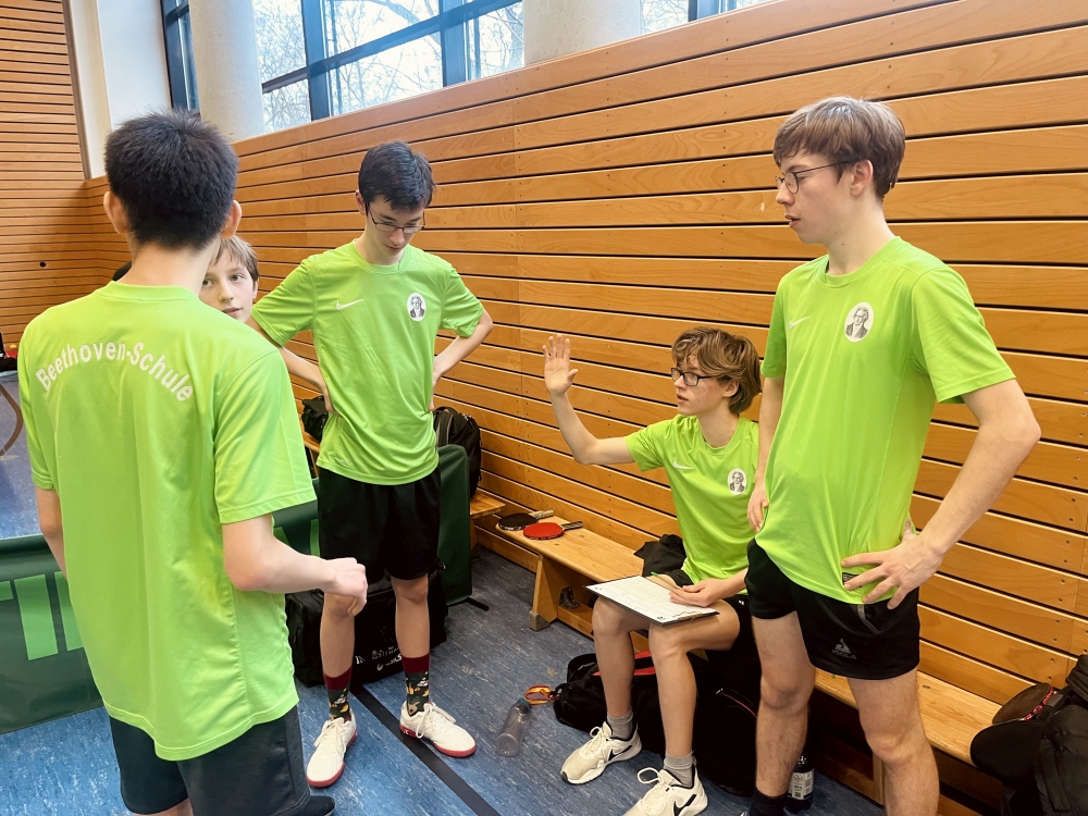 Am Donnerstag, den 23.01.2025, war die Beethoven-Tischtennis-Mannschaft wieder bei den Berliner Rundenspielen in Neukölln am Start. Aus dem Erfolgsteam vom Vorjahr waren Kevin Chen und Mads Richter leider zu alt, die übrigen Jungs wollten aber unbedingt auch in diesem Jahr wieder antreten, wenngleich das Team nicht so stark sein könnte wie beim letzten Mal. Zwei Wochen zuvor fand daher in der alten Halle ein Casting statt, um die beiden freien Plätze im Team zu vergeben. Viele Anwärter für den schulfreien Tag stellten sich vor – das Team castete selbst und entschied sich für Levi Martens und Erik Wiedmann aus der 8D.