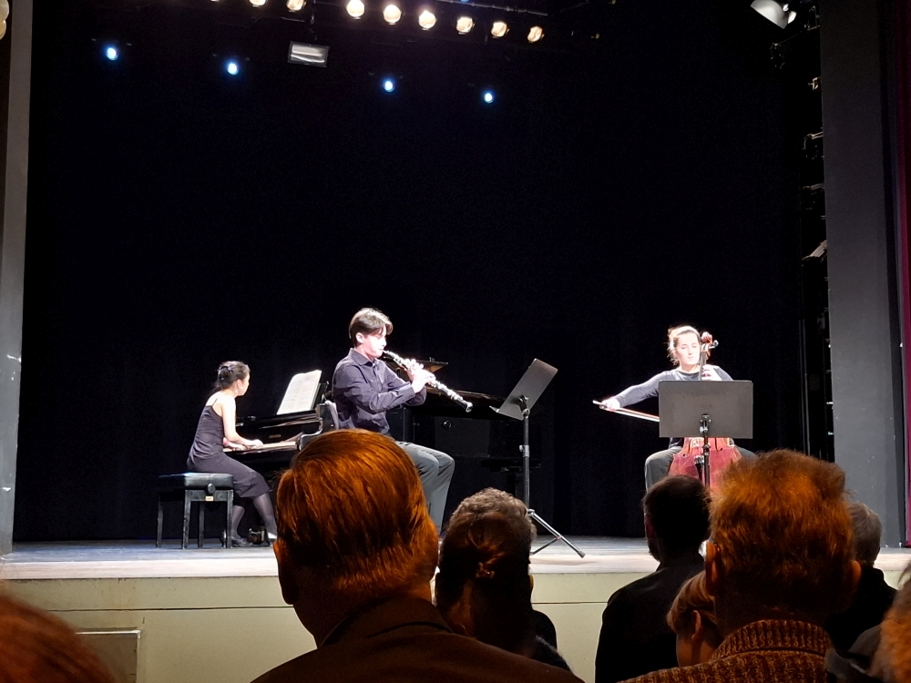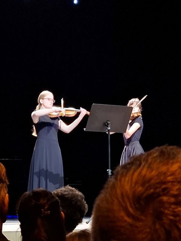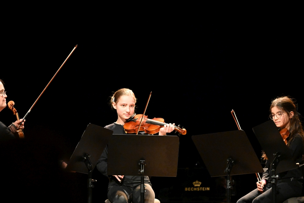 Alle Alterststufen, von der 7. bis zur 12. Klasse, waren in verschiedenen Ensembles vertreten. Vom Streichduo über Klaviertrio und Streichquartett bis zur Teilnahme am schulübergreifenden Bläserensemble reichte die Vielfalt der Ensembles. Das Einspringen von Eltern bzw. Ensembleleitungen ermöglichte allen Gruppen, trotz krankheitsbedingter Ausfälle auftreten zu können. Der Nachmittag bescherte allen Gästen ein buntes Programm quer durch die Jahrhunderte, einen Einblick in fünf verschiedene Schulen - und macht Lust auf das Konzert im eigenen Hause am Montag, den 20. Januar um 18 Uhr im Musikraum 108!